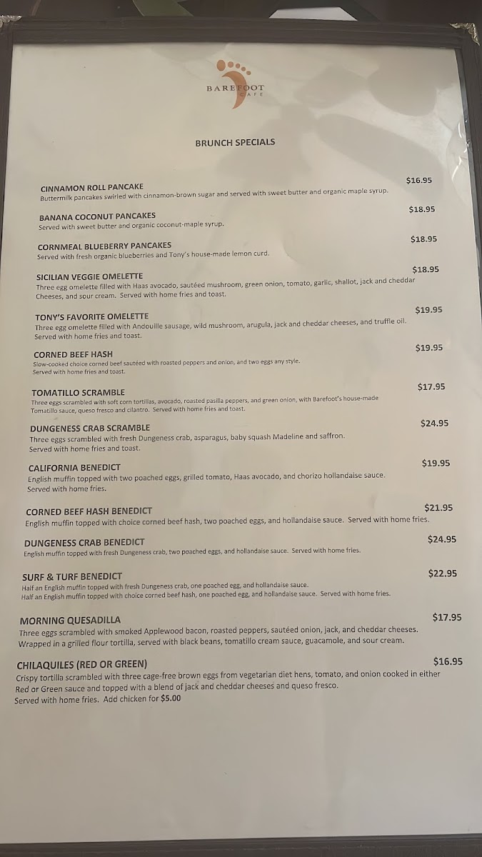 If you’re curious about what locals rave about, the Barefoot Cafe Menu is a great place to start. Tucked along 1900 Sir Francis Drake Blvd in Fairfax, this cozy neighborhood spot serves up the kind of comfort food that makes you want to linger a little longer. Right away, you’ll notice the breakfast plates are a big deal here - fluffy pancakes, hearty omelets, and generous scrambles loaded with fresh ingredients.